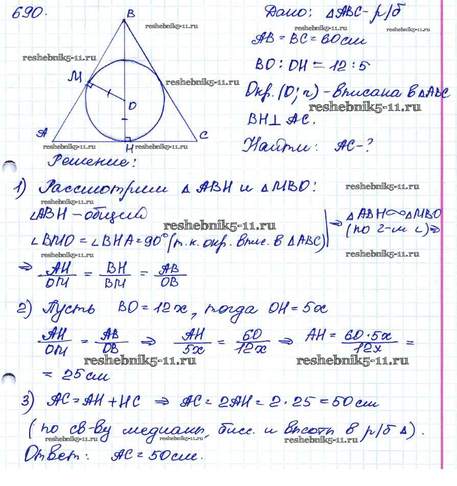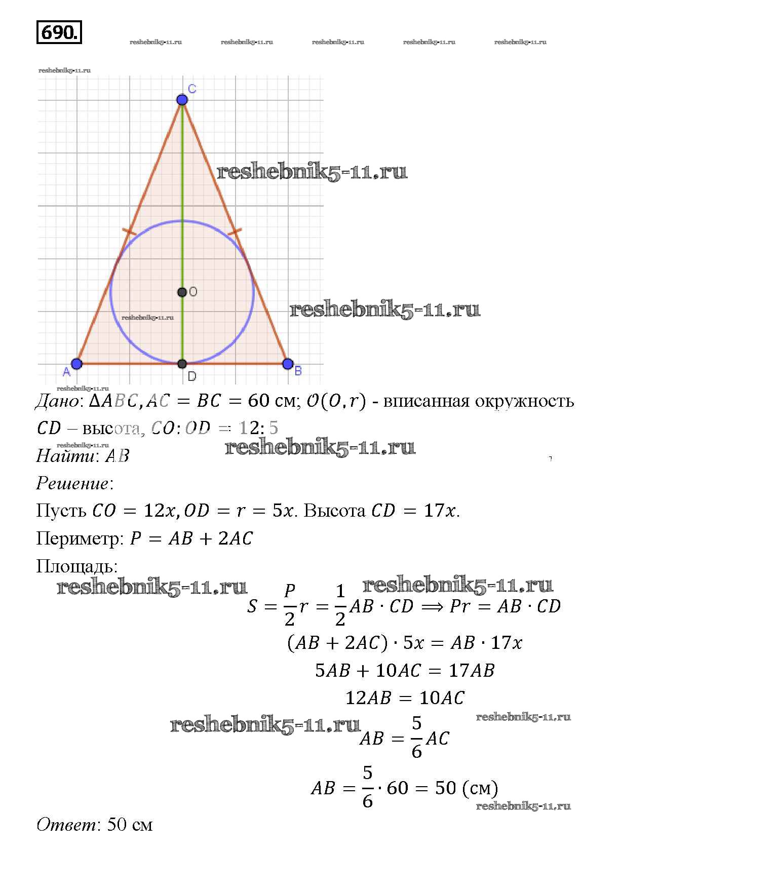 Готовая домашняя работа с ответами по Геометрии за 7, 8, 9 класс Атанасян, Бутузов, Кадомцев Учебник Просвещение 2010 ФГОС - Задачи 690