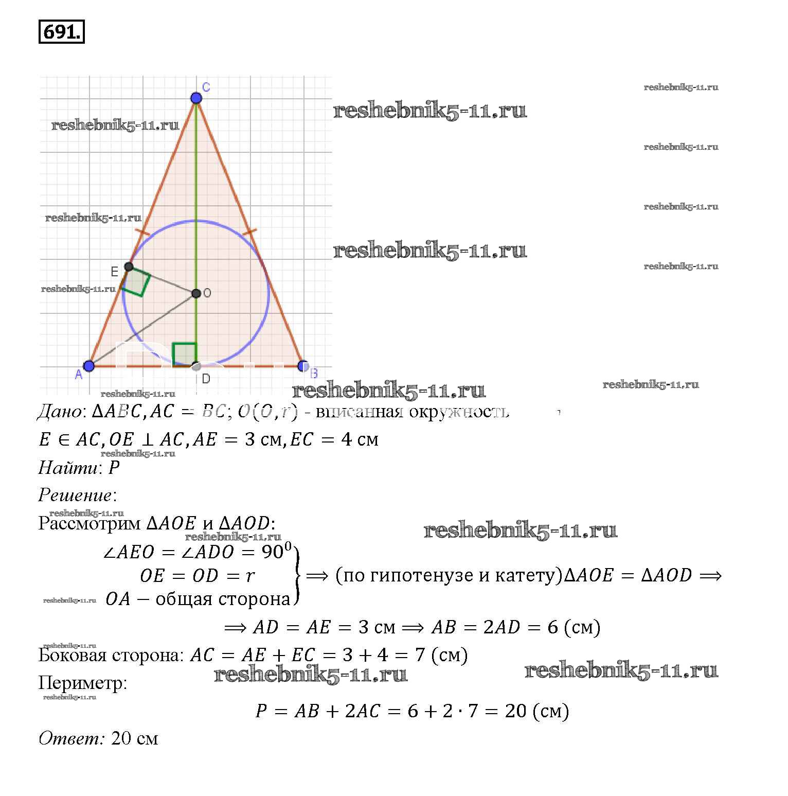 Готовая домашняя работа с ответами по Геометрии за 7, 8, 9 класс Атанасян, Бутузов, Кадомцев Учебник Просвещение 2010 ФГОС - Задачи 691