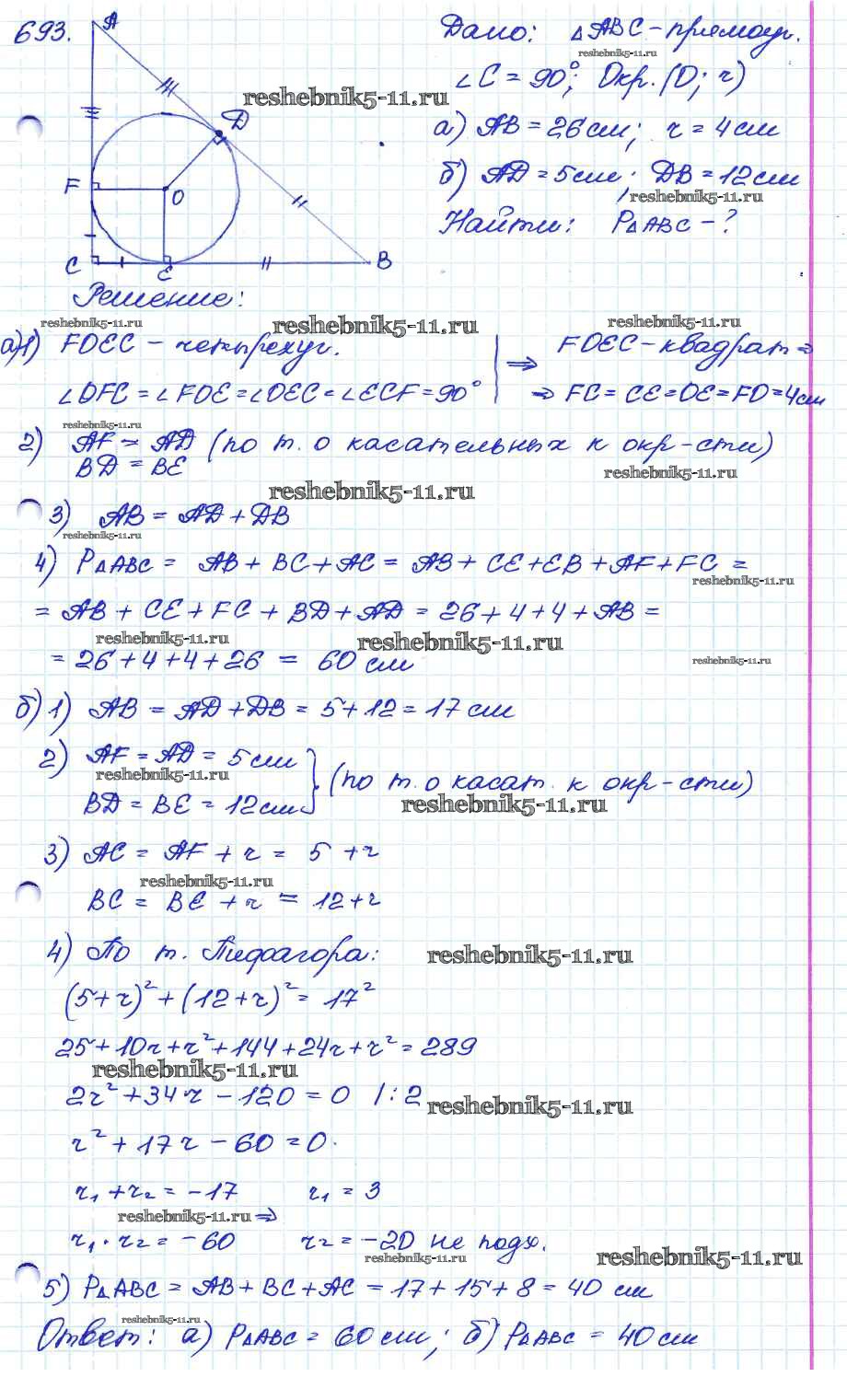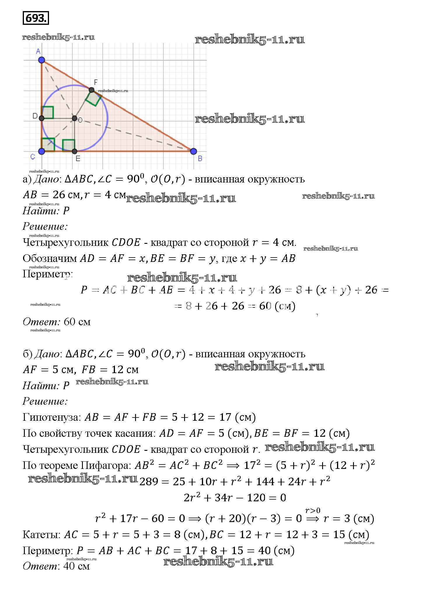 Готовая домашняя работа с ответами по Геометрии за 7, 8, 9 класс Атанасян, Бутузов, Кадомцев Учебник Просвещение 2010 ФГОС - Задачи 693