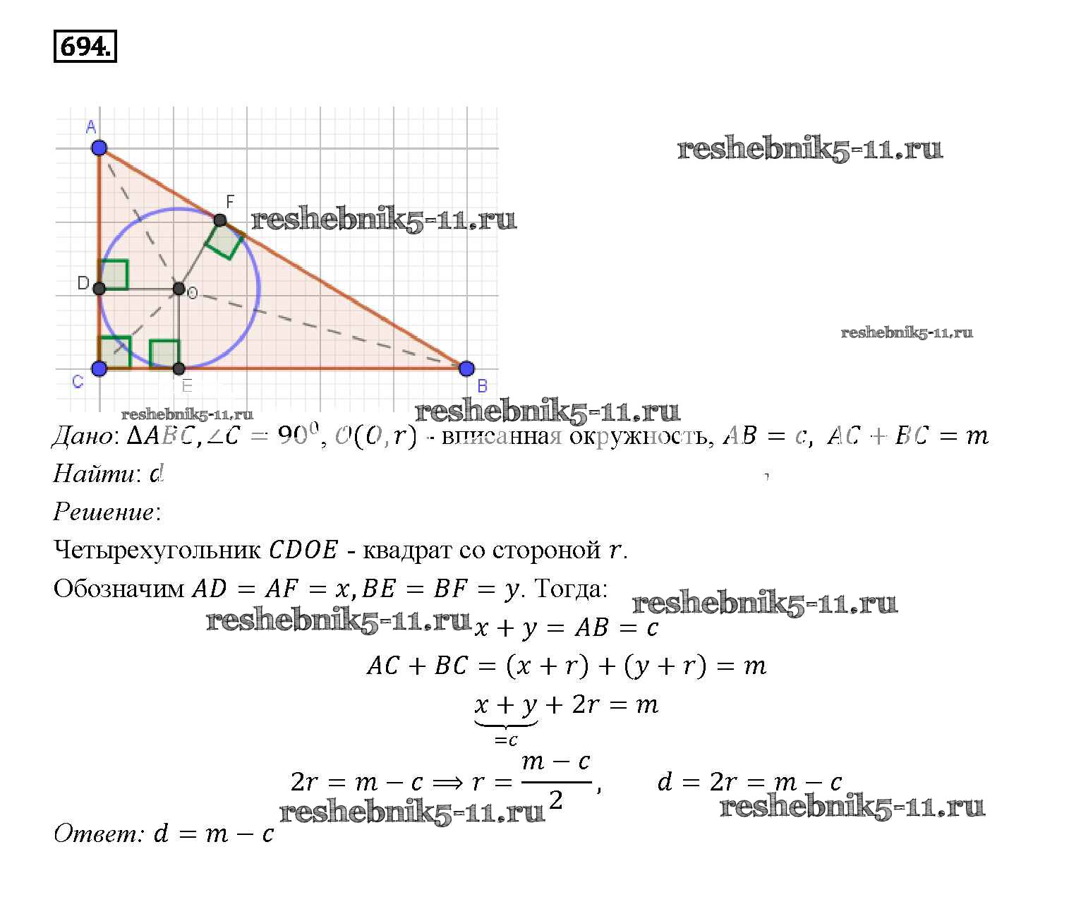 Готовая домашняя работа с ответами по Геометрии за 7, 8, 9 класс Атанасян, Бутузов, Кадомцев Учебник Просвещение 2010 ФГОС - Задачи 694