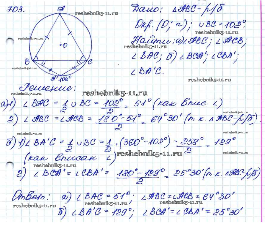 Готовая домашняя работа с ответами по Геометрии за 7, 8, 9 класс Атанасян, Бутузов, Кадомцев Учебник Просвещение 2010 ФГОС - Задачи 703