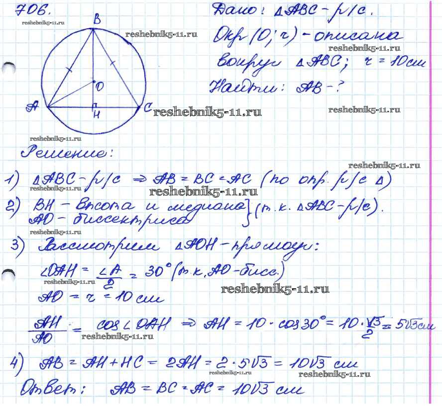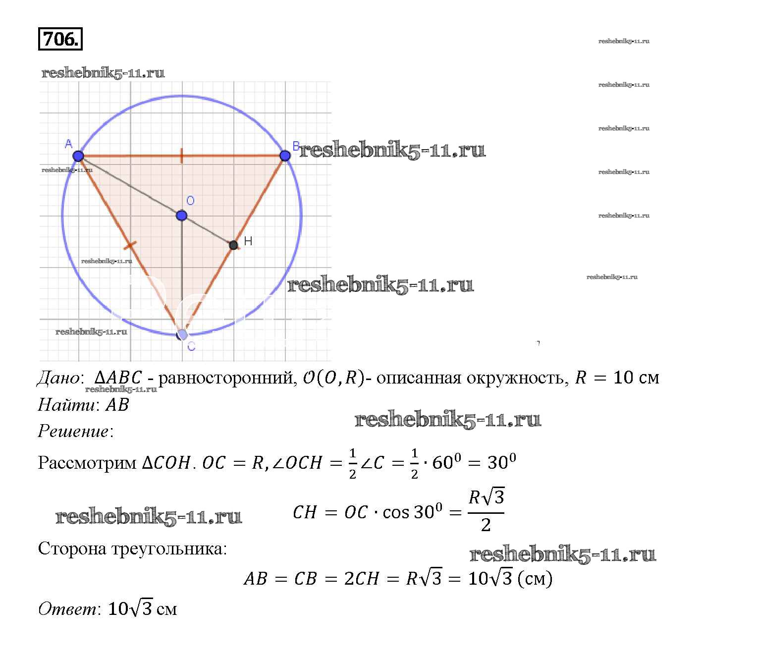 Готовая домашняя работа с ответами по Геометрии за 7, 8, 9 класс Атанасян, Бутузов, Кадомцев Учебник Просвещение 2010 ФГОС - Задачи 706