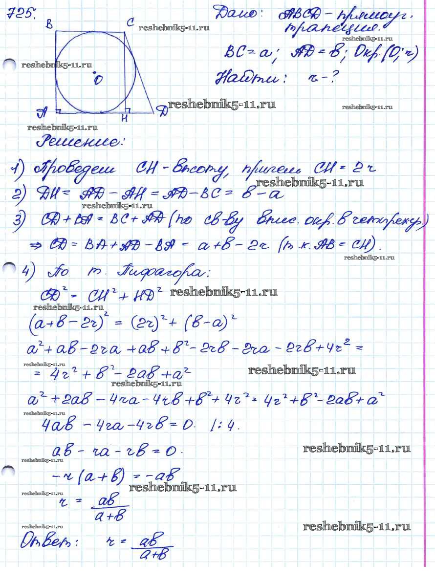 Готовая домашняя работа с ответами по Геометрии за 7, 8, 9 класс Атанасян, Бутузов, Кадомцев Учебник Просвещение 2010 ФГОС - Задачи 725