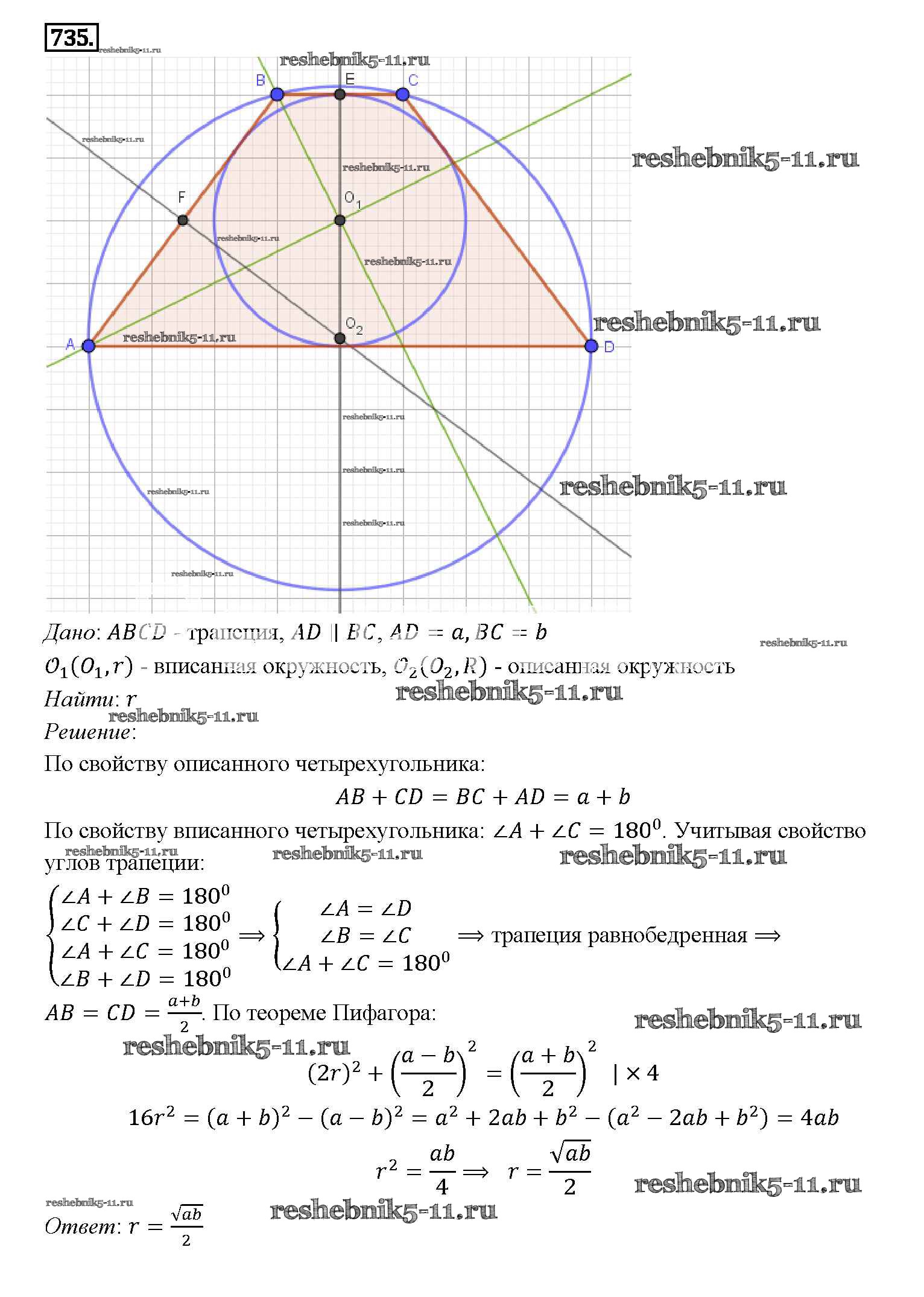 Готовая домашняя работа с ответами по Геометрии за 7, 8, 9 класс Атанасян, Бутузов, Кадомцев Учебник Просвещение 2010 ФГОС - Задачи 735