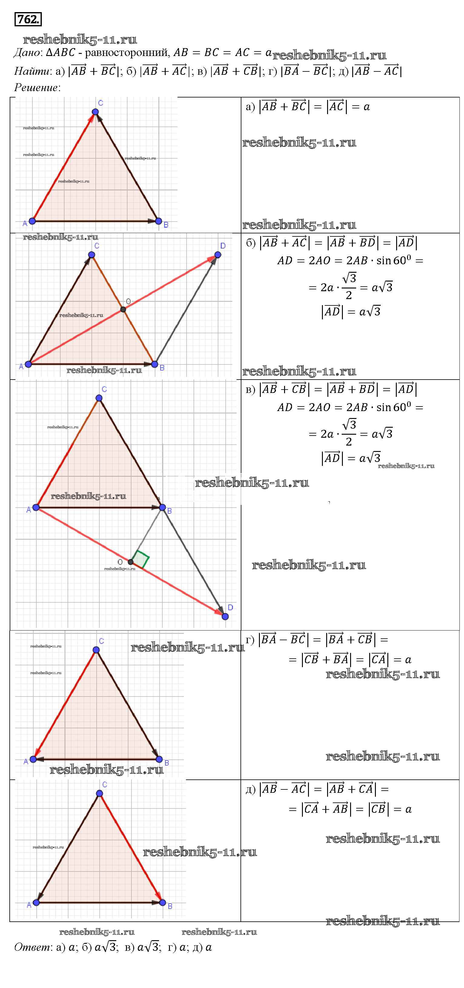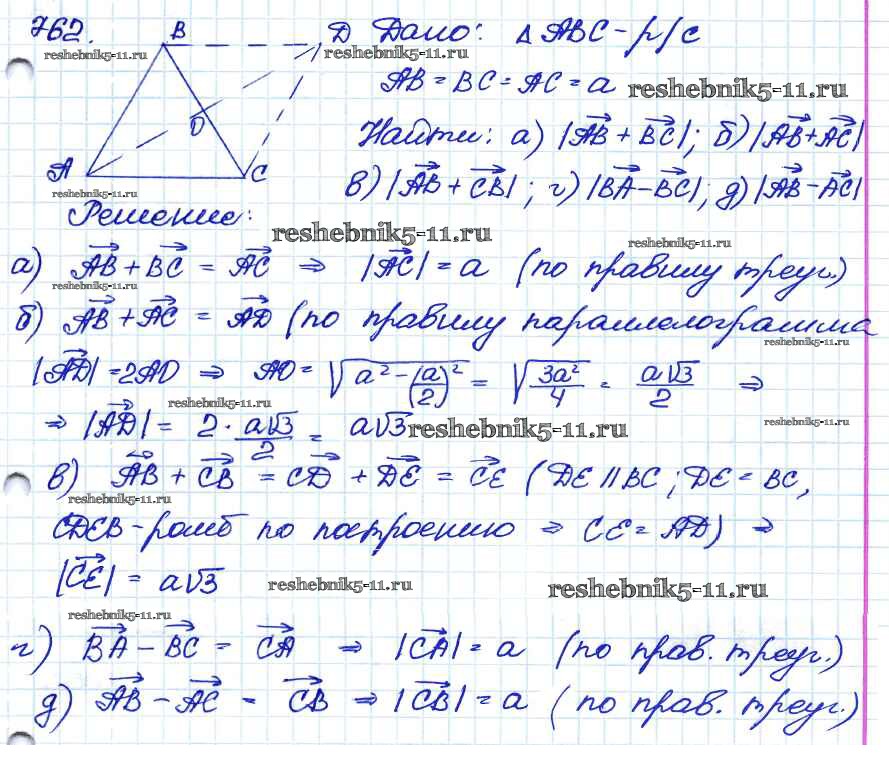 Готовая домашняя работа с ответами по Геометрии за 7, 8, 9 класс Атанасян, Бутузов, Кадомцев Учебник Просвещение 2010 ФГОС - Задачи 762