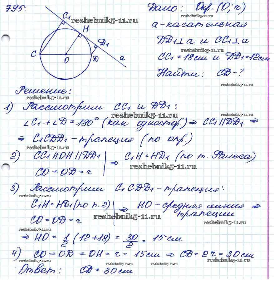 Готовая домашняя работа с ответами по Геометрии за 7, 8, 9 класс Атанасян, Бутузов, Кадомцев Учебник Просвещение 2010 ФГОС - Задачи 795
