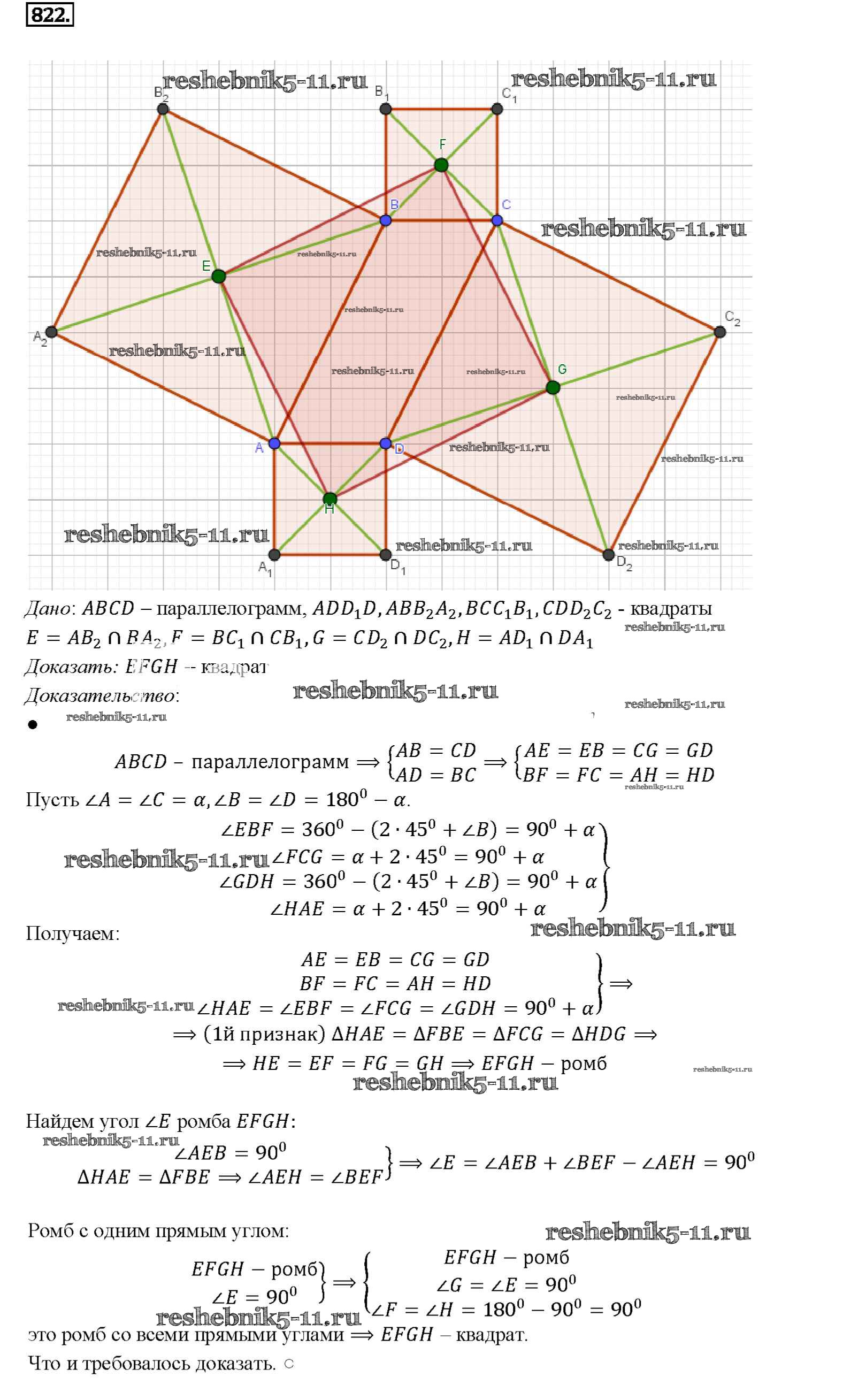 Готовая домашняя работа с ответами по Геометрии за 7, 8, 9 класс Атанасян, Бутузов, Кадомцев Учебник Просвещение 2010 ФГОС - Задачи 822