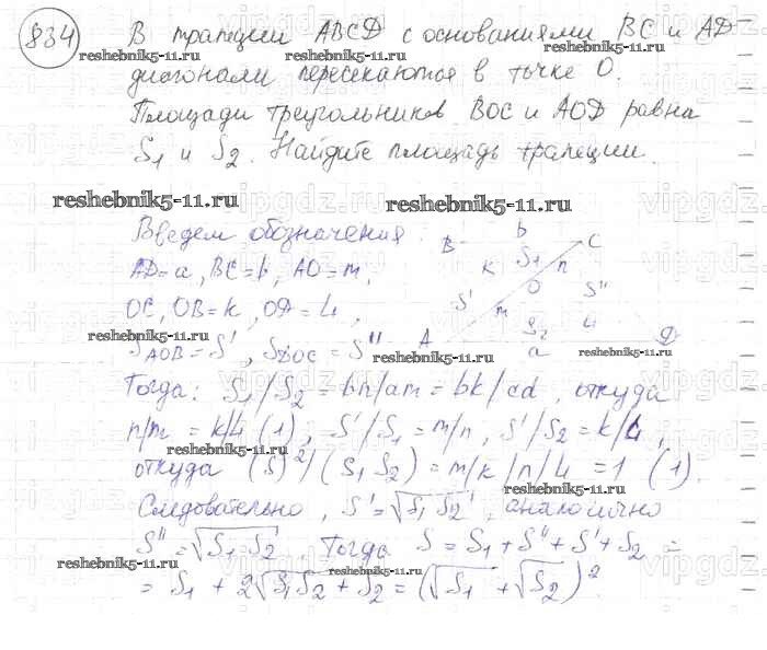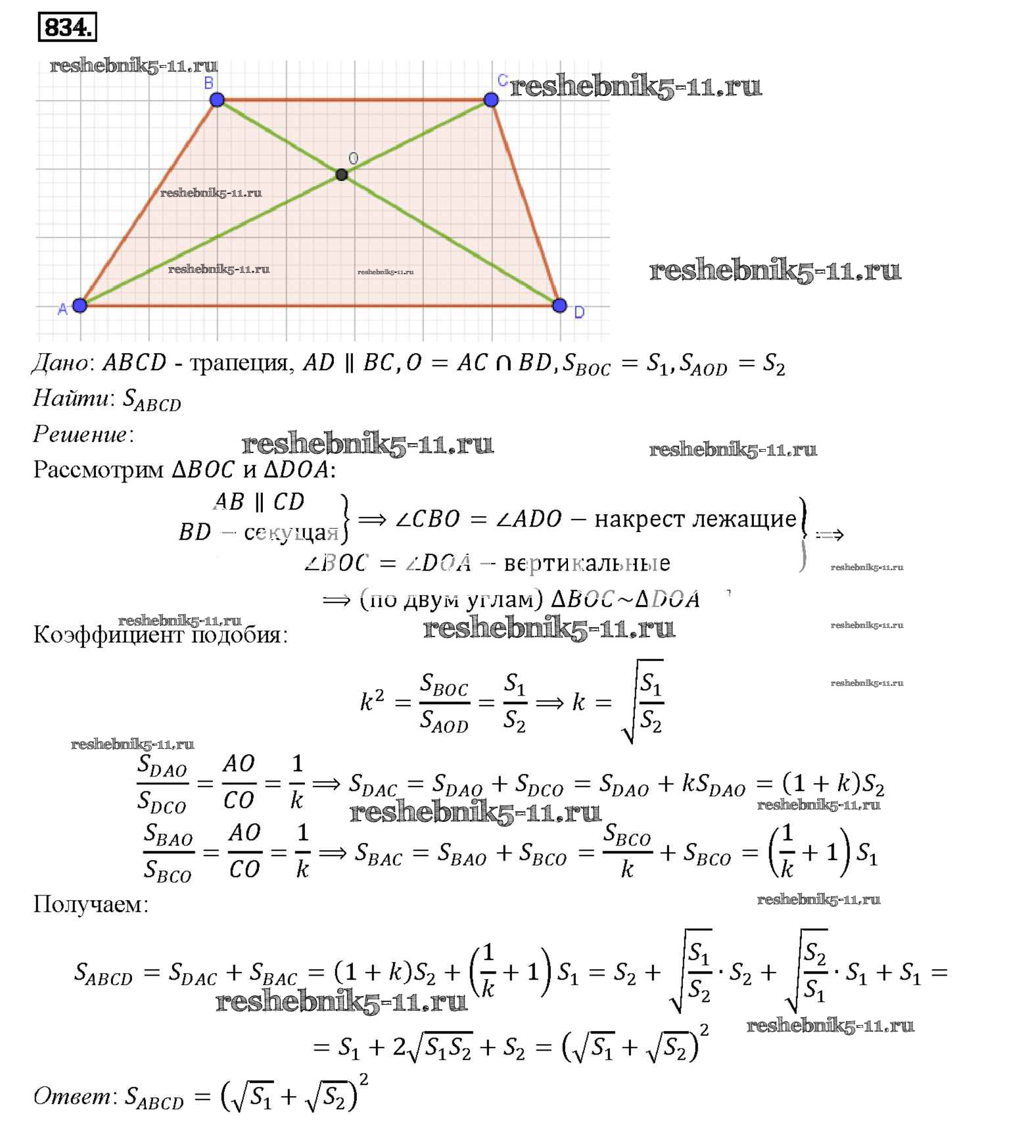 Готовая домашняя работа с ответами по Геометрии за 7, 8, 9 класс Атанасян, Бутузов, Кадомцев Учебник Просвещение 2010 ФГОС - Задачи 834