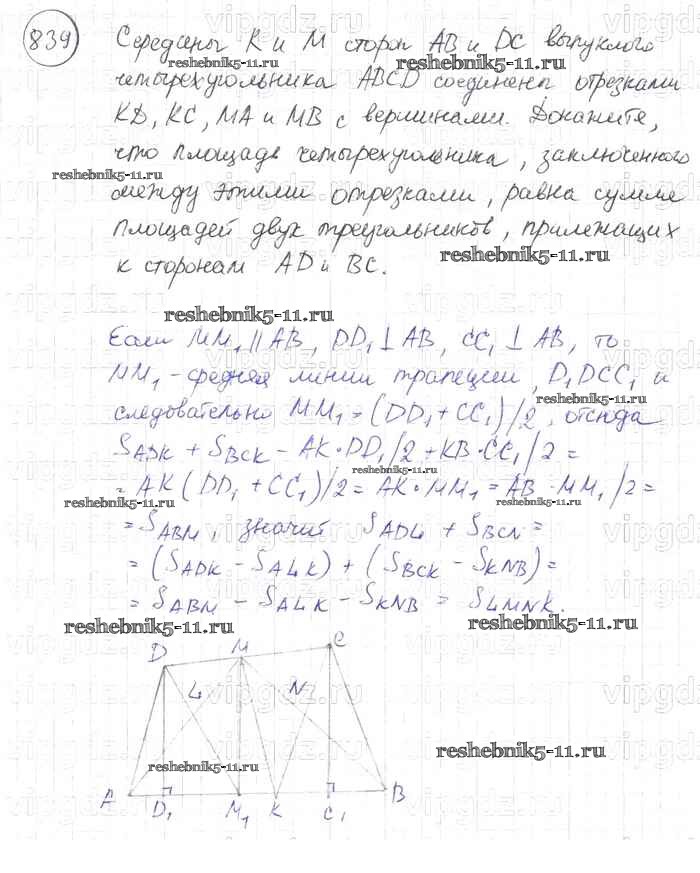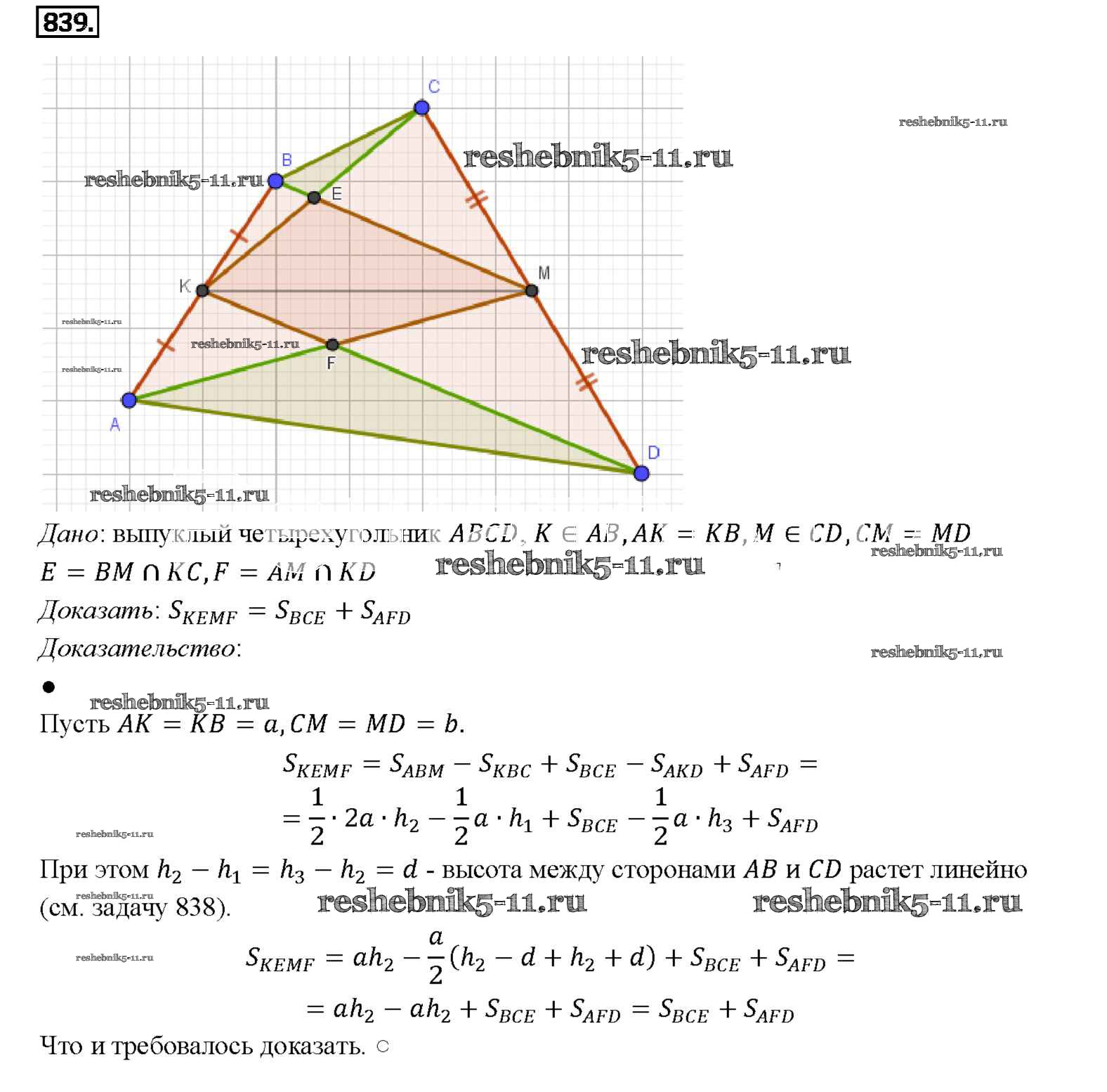 Готовая домашняя работа с ответами по Геометрии за 7, 8, 9 класс Атанасян, Бутузов, Кадомцев Учебник Просвещение 2010 ФГОС - Задачи 839