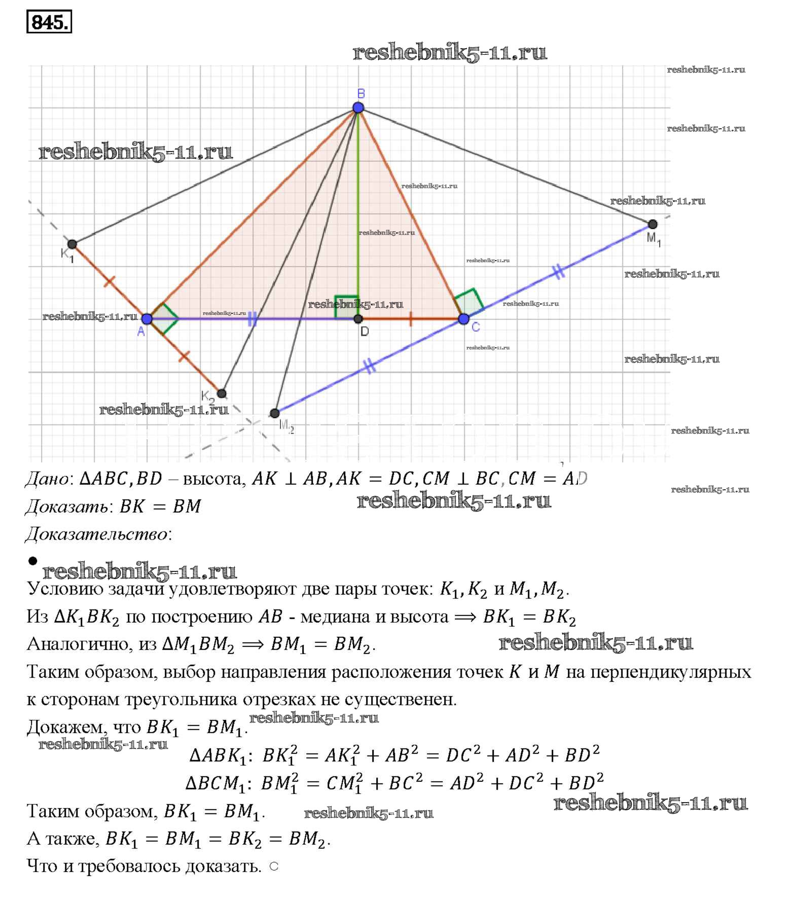 Готовая домашняя работа с ответами по Геометрии за 7, 8, 9 класс Атанасян, Бутузов, Кадомцев Учебник Просвещение 2010 ФГОС - Задачи 845