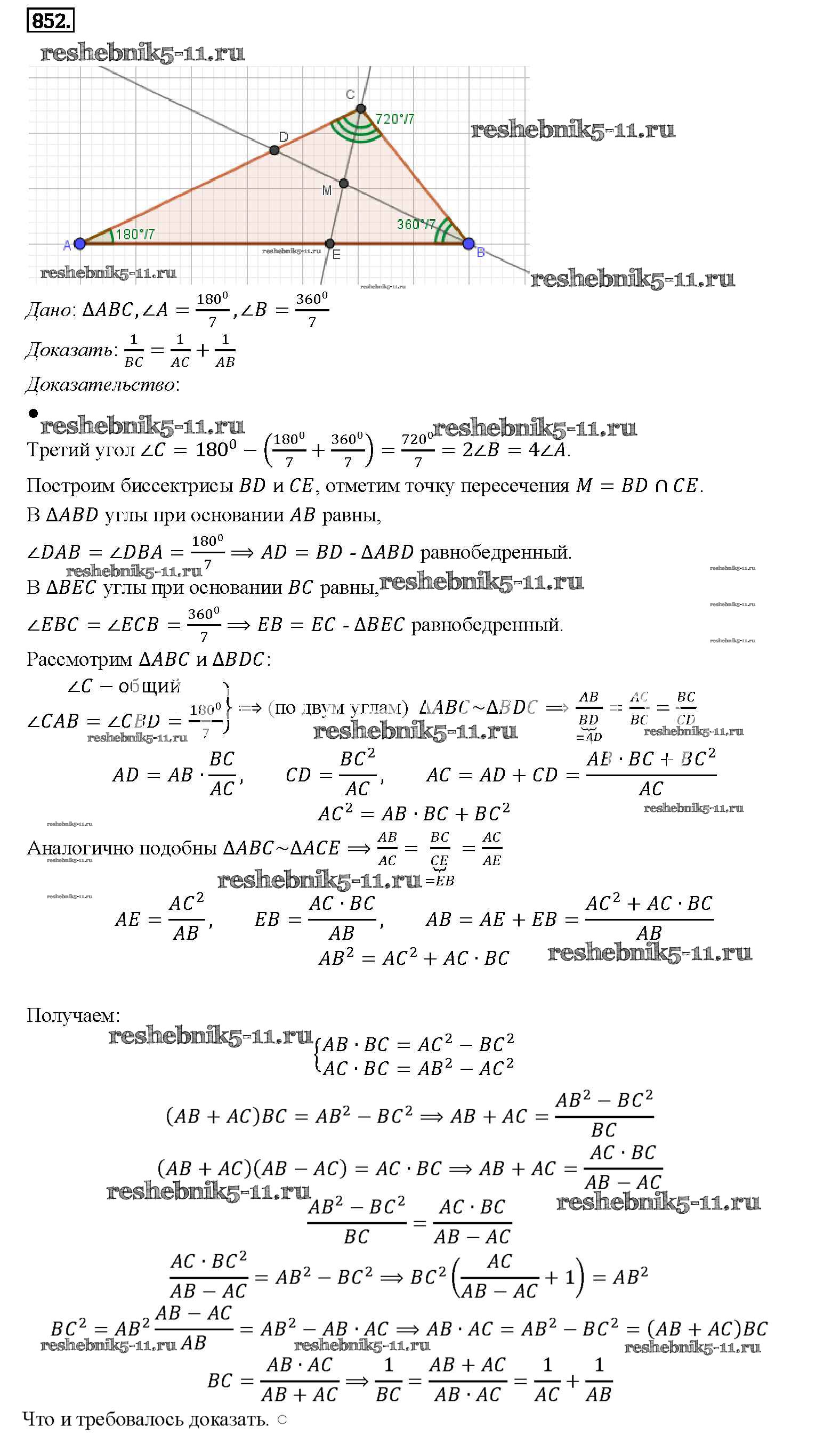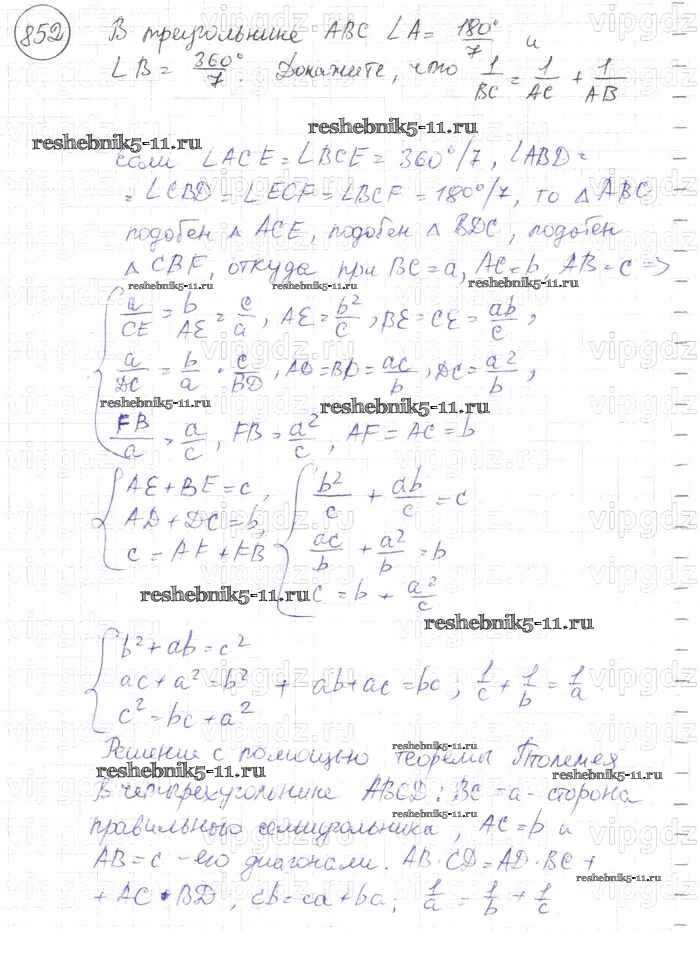 Готовая домашняя работа с ответами по Геометрии за 7, 8, 9 класс Атанасян, Бутузов, Кадомцев Учебник Просвещение 2010 ФГОС - Задачи 852