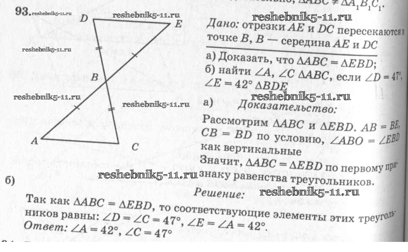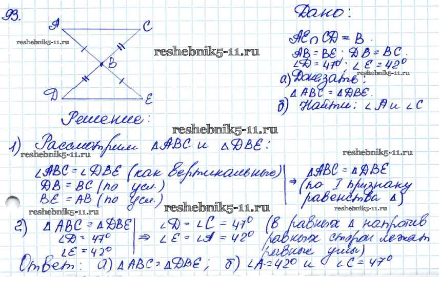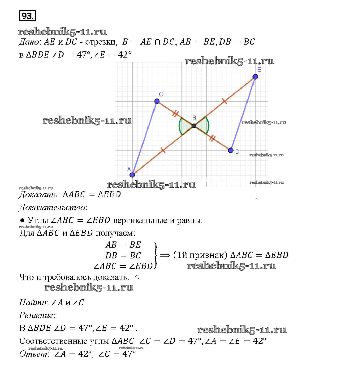 Готовая домашняя работа с ответами по Геометрии за 7, 8, 9 класс Атанасян, Бутузов, Кадомцев Учебник Просвещение 2010 ФГОС - Задачи 93