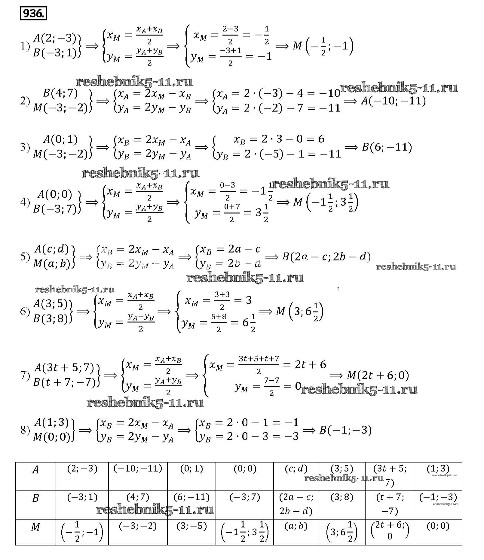 Готовая домашняя работа с ответами по Геометрии за 7, 8, 9 класс Атанасян, Бутузов, Кадомцев Учебник Просвещение 2010 ФГОС - Задачи 936