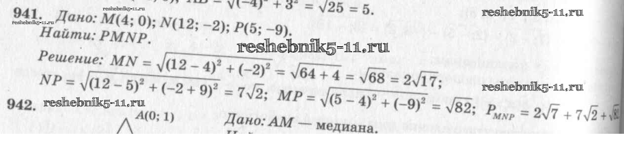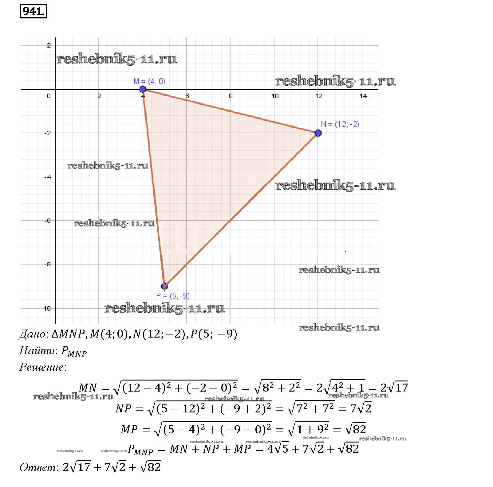 Готовая домашняя работа с ответами по Геометрии за 7, 8, 9 класс Атанасян, Бутузов, Кадомцев Учебник Просвещение 2010 ФГОС - Задачи 941