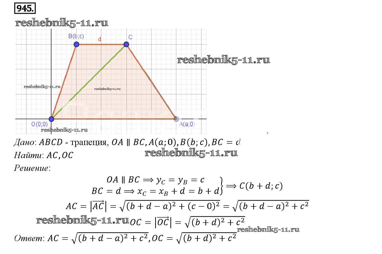 Готовая домашняя работа с ответами по Геометрии за 7, 8, 9 класс Атанасян, Бутузов, Кадомцев Учебник Просвещение 2010 ФГОС - Задачи 945