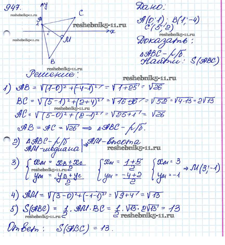 Готовая домашняя работа с ответами по Геометрии за 7, 8, 9 класс Атанасян, Бутузов, Кадомцев Учебник Просвещение 2010 ФГОС - Задачи 947