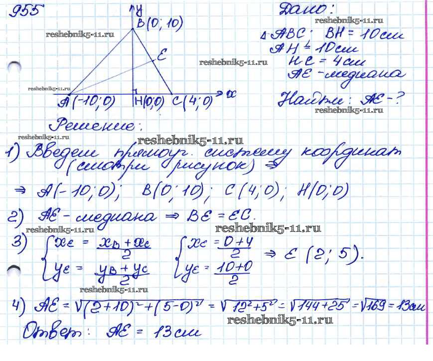 Готовая домашняя работа с ответами по Геометрии за 7, 8, 9 класс Атанасян, Бутузов, Кадомцев Учебник Просвещение 2010 ФГОС - Задачи 955