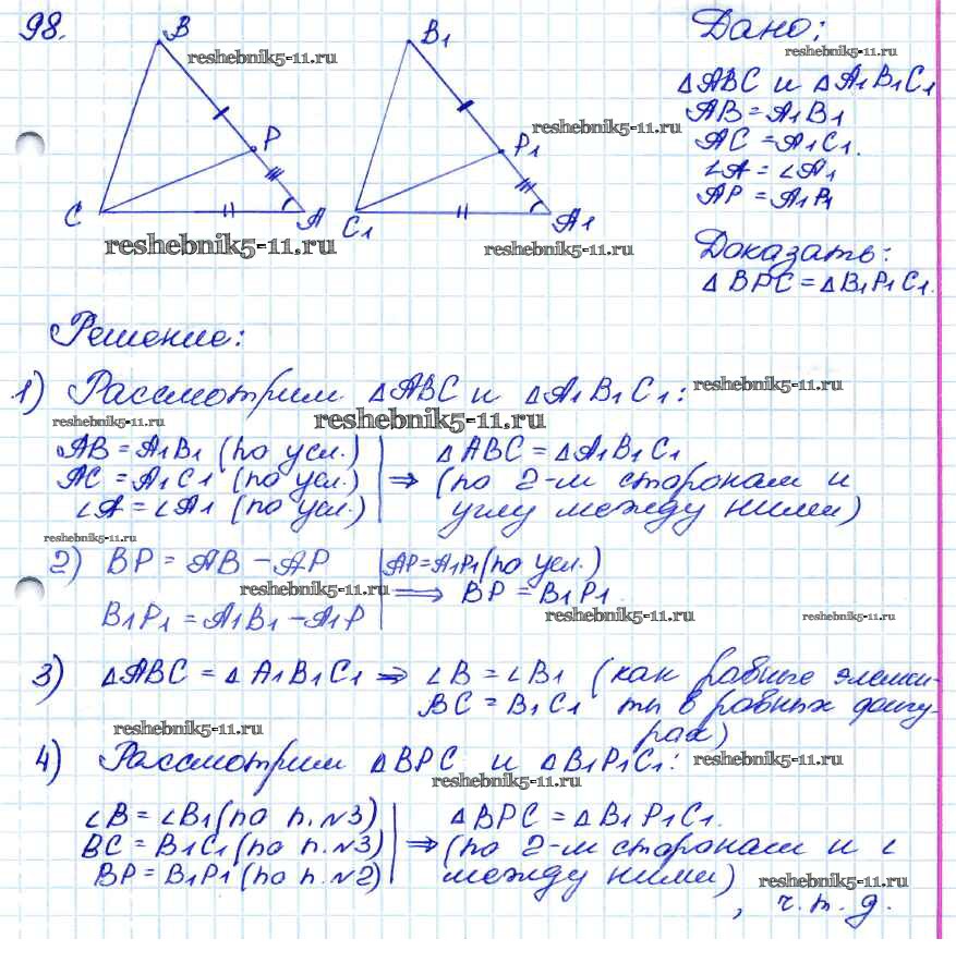 Готовая домашняя работа с ответами по Геометрии за 7, 8, 9 класс Атанасян, Бутузов, Кадомцев Учебник Просвещение 2010 ФГОС - Задачи 98