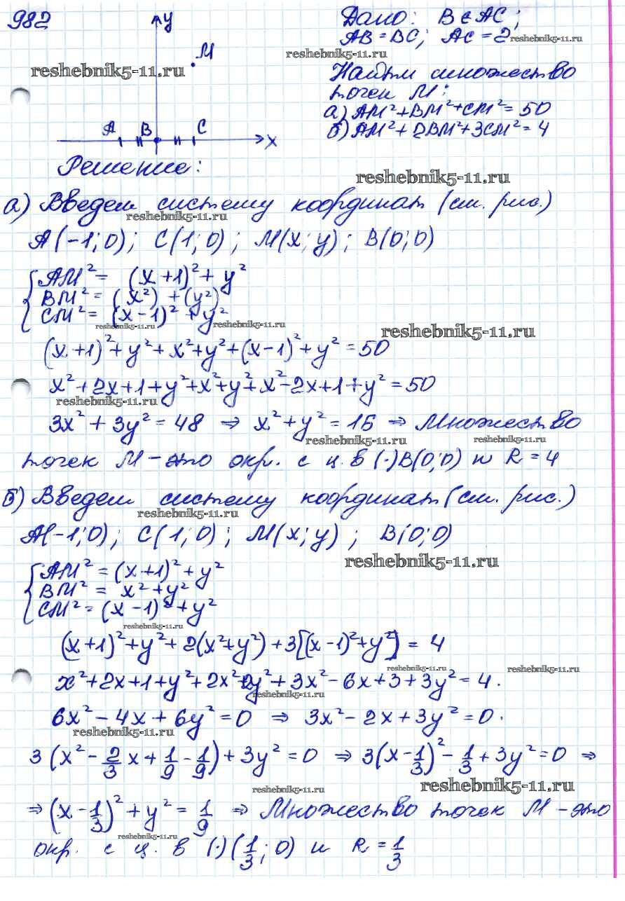Готовая домашняя работа с ответами по Геометрии за 7, 8, 9 класс Атанасян, Бутузов, Кадомцев Учебник Просвещение 2010 ФГОС - Задачи 982