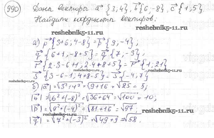 Готовая домашняя работа с ответами по Геометрии за 7, 8, 9 класс Атанасян, Бутузов, Кадомцев Учебник Просвещение 2010 ФГОС - Задачи 990