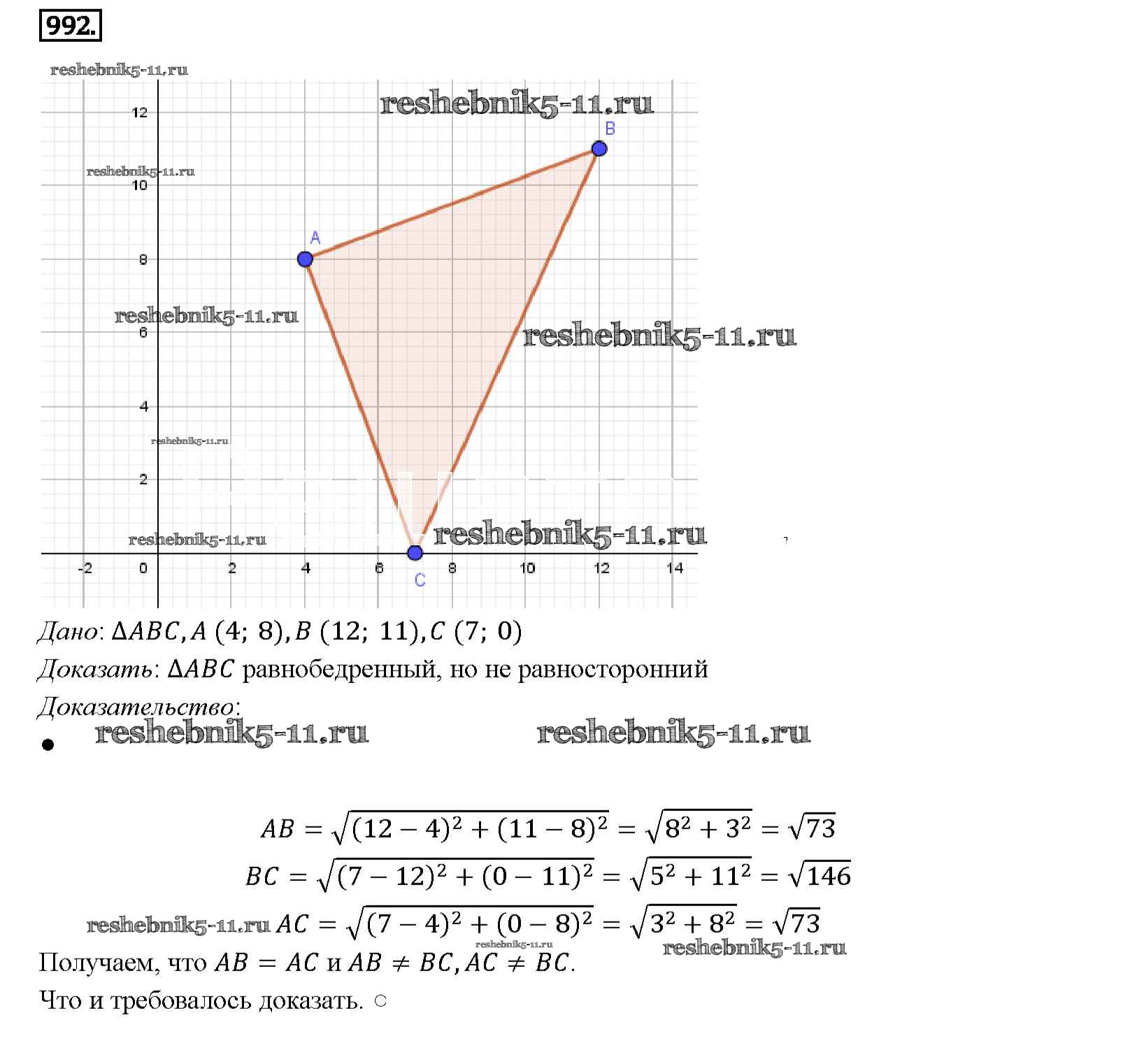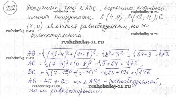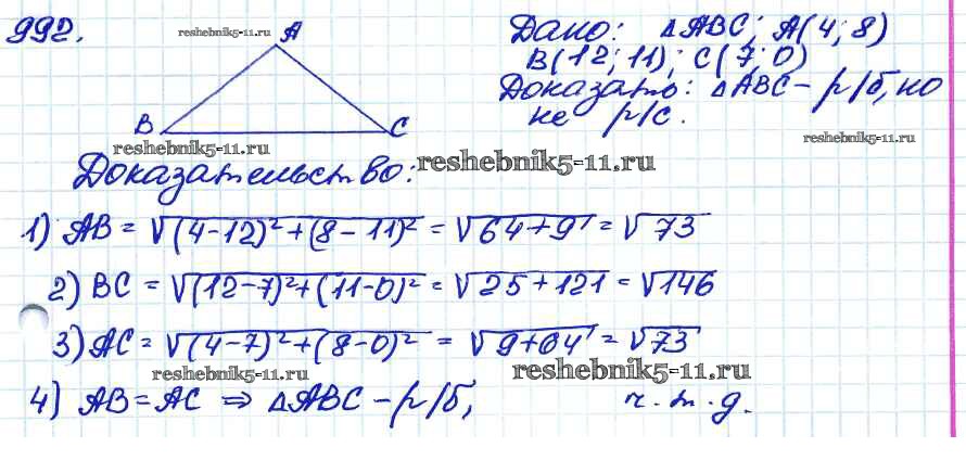 Готовая домашняя работа с ответами по Геометрии за 7, 8, 9 класс Атанасян, Бутузов, Кадомцев Учебник Просвещение 2010 ФГОС - Задачи 992