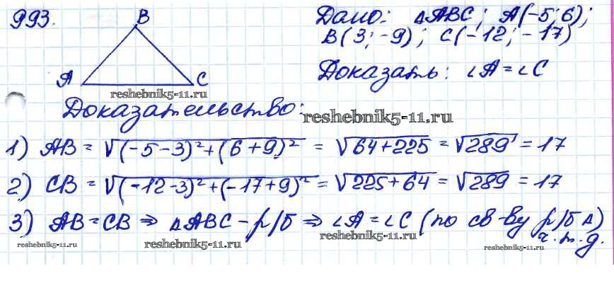 Готовая домашняя работа с ответами по Геометрии за 7, 8, 9 класс Атанасян, Бутузов, Кадомцев Учебник Просвещение 2010 ФГОС - Задачи 993