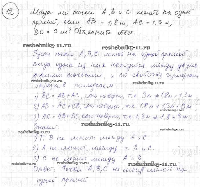 Готовая домашняя работа с ответами по Геометрии за 7, 8, 9 класс Погорелов Учебник Просвещение 2014 ФГОС - §1. Основные свойства простейших геометрических фигур 12