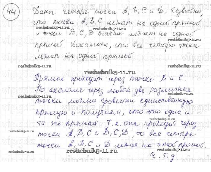 Готовая домашняя работа с ответами по Геометрии за 7, 8, 9 класс Погорелов Учебник Просвещение 2014 ФГОС - §1. Основные свойства простейших геометрических фигур 44