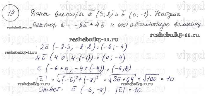 Готовая домашняя работа с ответами по Геометрии за 7, 8, 9 класс Погорелов Учебник Просвещение 2014 ФГОС - §10. Векторы 19