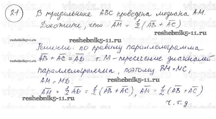 Готовая домашняя работа с ответами по Геометрии за 7, 8, 9 класс Погорелов Учебник Просвещение 2014 ФГОС - §10. Векторы 21