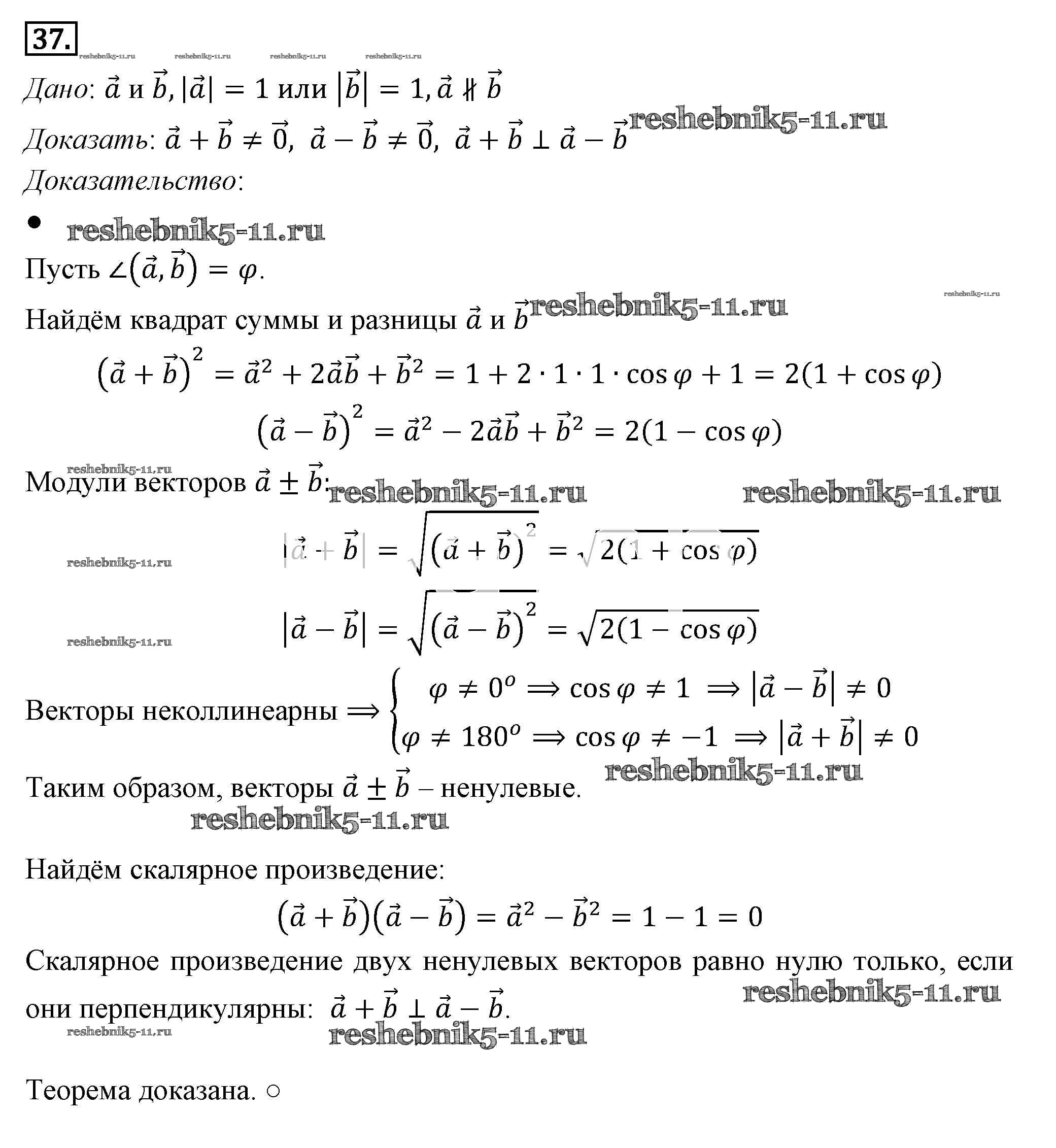 Готовая домашняя работа с ответами по Геометрии за 7, 8, 9 класс Погорелов Учебник Просвещение 2014 ФГОС - §10. Векторы 37