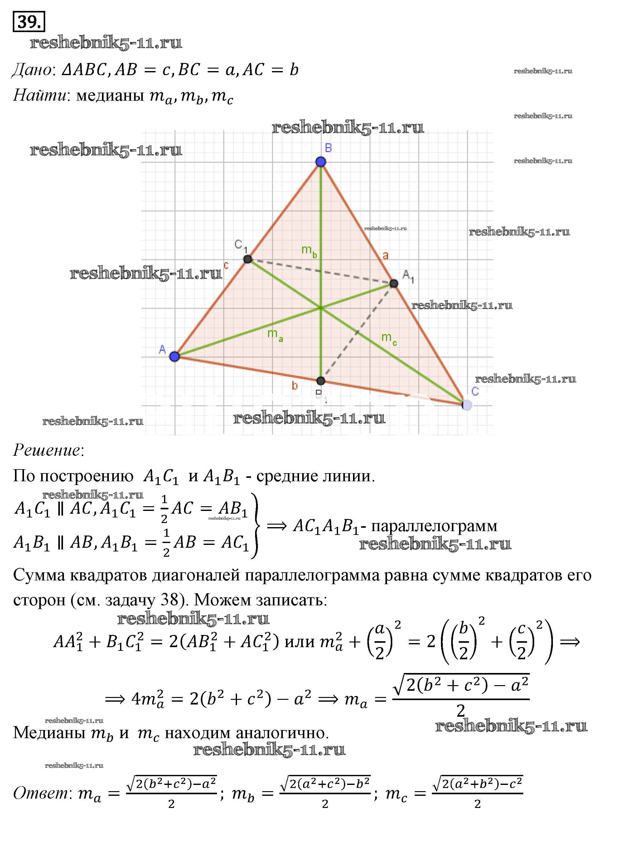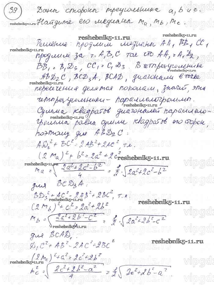 Готовая домашняя работа с ответами по Геометрии за 7, 8, 9 класс Погорелов Учебник Просвещение 2014 ФГОС - §10. Векторы 39