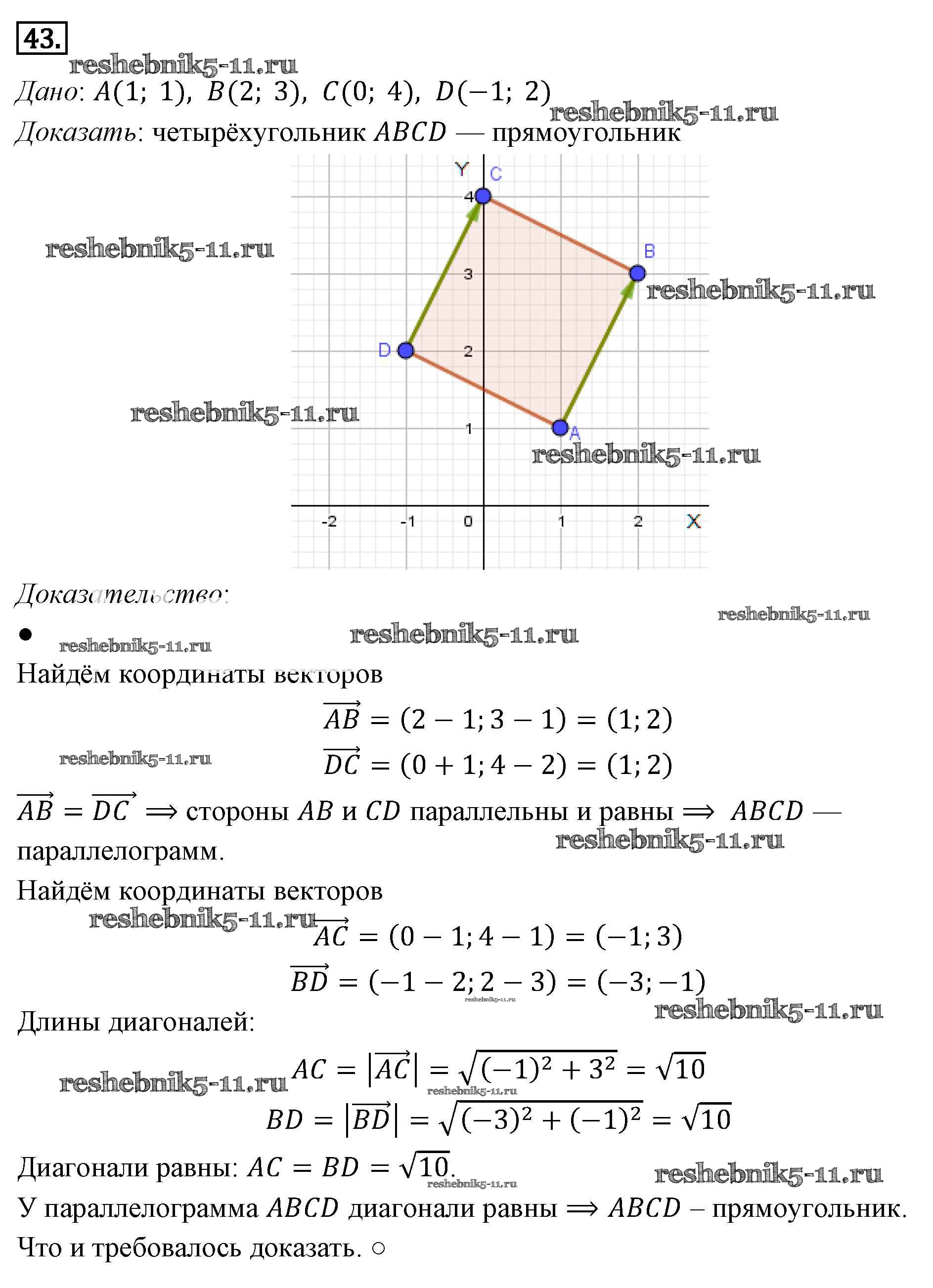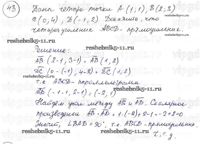 Готовая домашняя работа с ответами по Геометрии за 7, 8, 9 класс Погорелов Учебник Просвещение 2014 ФГОС - §10. Векторы 43