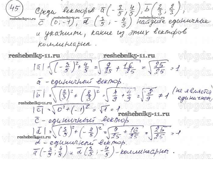 Готовая домашняя работа с ответами по Геометрии за 7, 8, 9 класс Погорелов Учебник Просвещение 2014 ФГОС - §10. Векторы 45