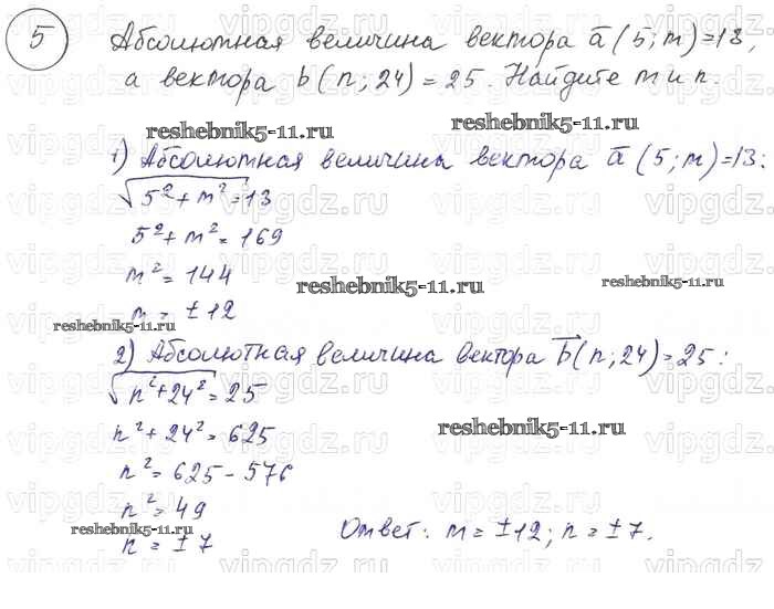 Готовая домашняя работа с ответами по Геометрии за 7, 8, 9 класс Погорелов Учебник Просвещение 2014 ФГОС - §10. Векторы 5