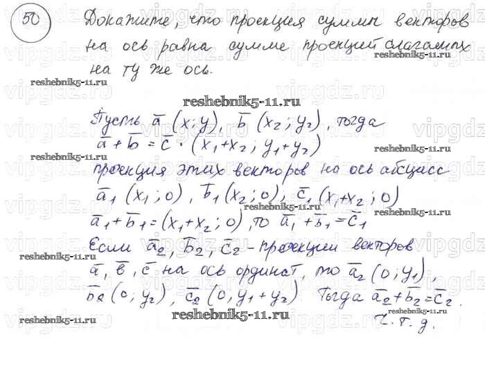 Готовая домашняя работа с ответами по Геометрии за 7, 8, 9 класс Погорелов Учебник Просвещение 2014 ФГОС - §10. Векторы 50