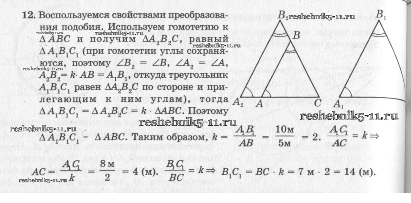 Готовая домашняя работа с ответами по Геометрии за 7, 8, 9 класс Погорелов Учебник Просвещение 2014 ФГОС - §11. Подобие фигур 12