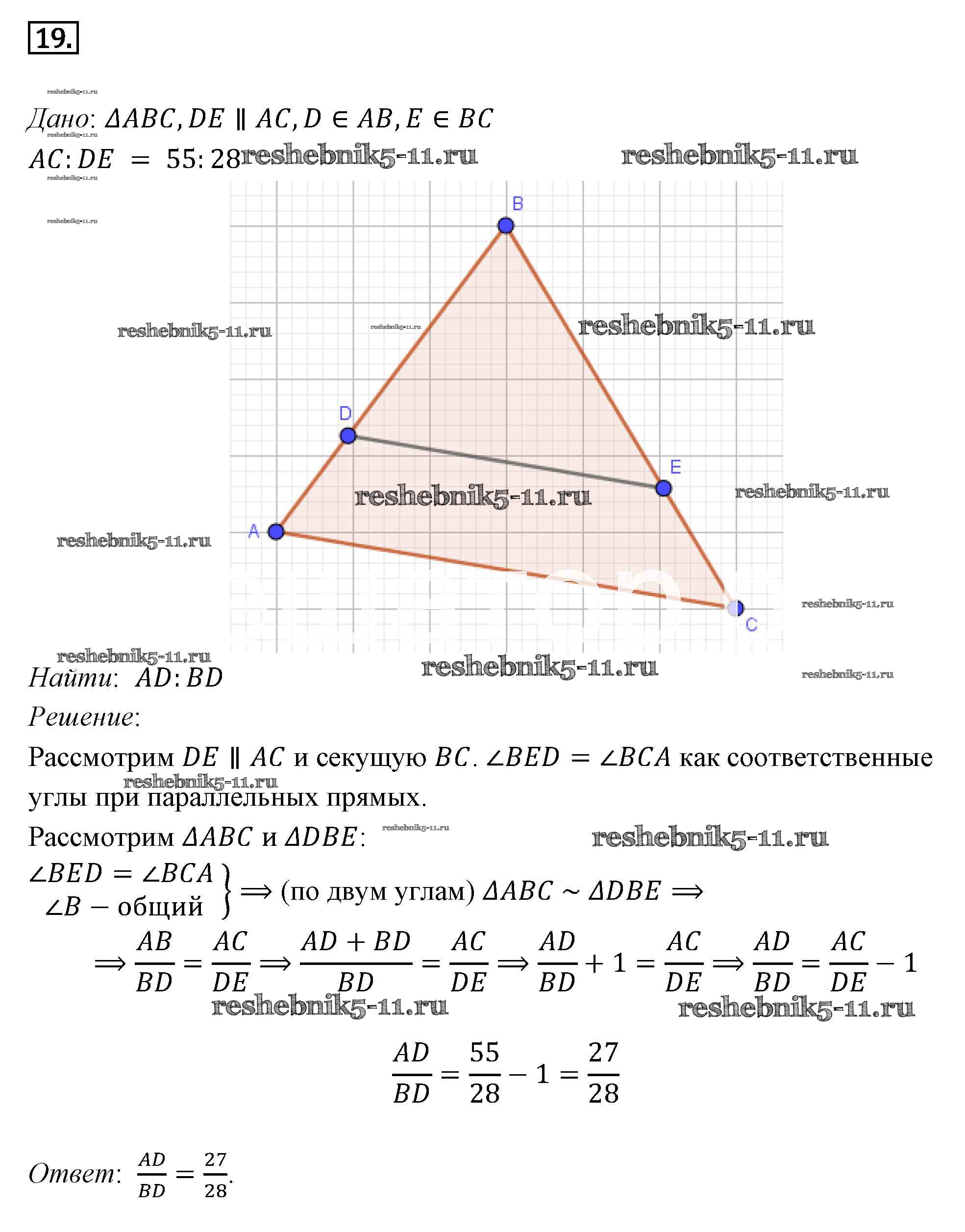 Готовая домашняя работа с ответами по Геометрии за 7, 8, 9 класс Погорелов Учебник Просвещение 2014 ФГОС - §11. Подобие фигур 19
