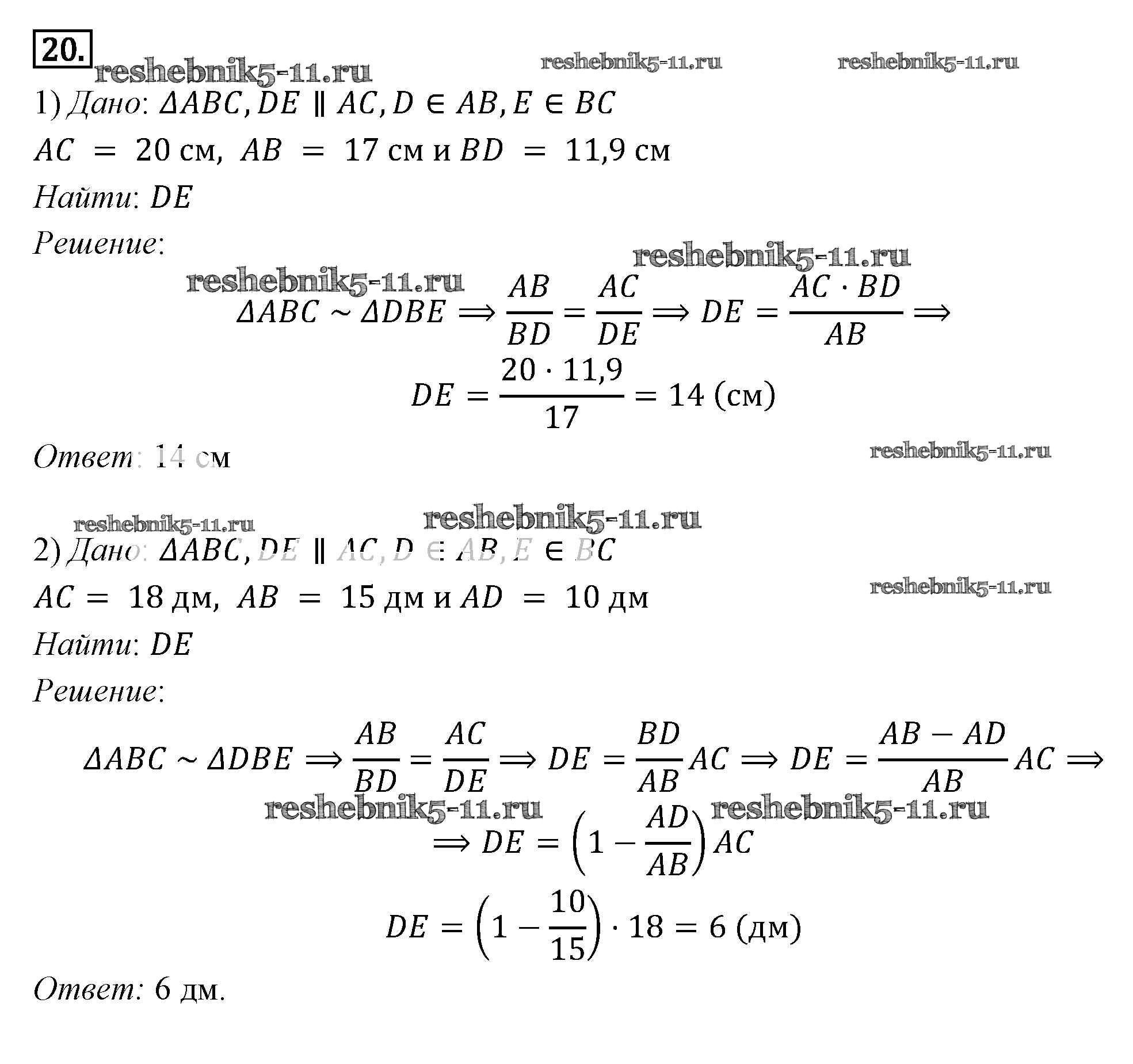 Готовая домашняя работа с ответами по Геометрии за 7, 8, 9 класс Погорелов Учебник Просвещение 2014 ФГОС - §11. Подобие фигур 20