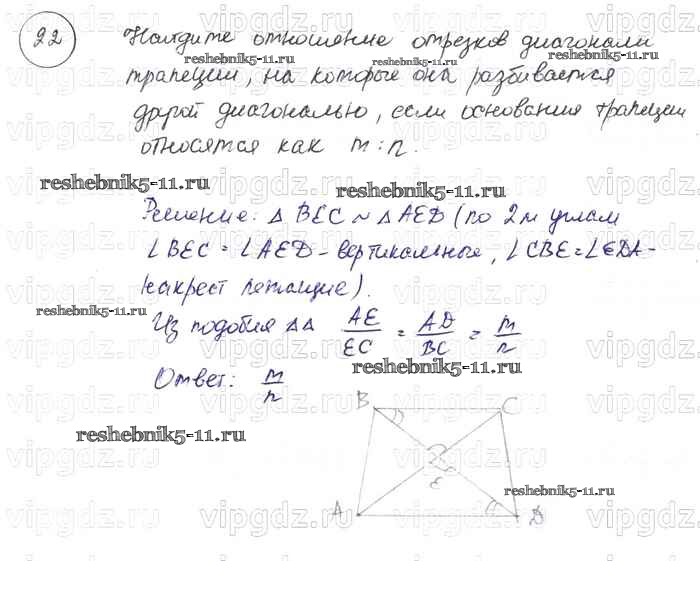 Готовая домашняя работа с ответами по Геометрии за 7, 8, 9 класс Погорелов Учебник Просвещение 2014 ФГОС - §11. Подобие фигур 22