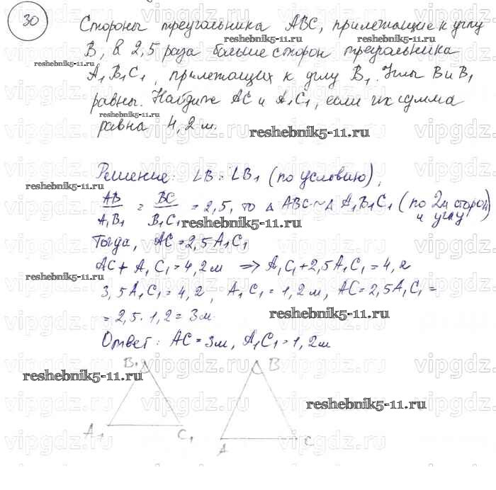 Готовая домашняя работа с ответами по Геометрии за 7, 8, 9 класс Погорелов Учебник Просвещение 2014 ФГОС - §11. Подобие фигур 30