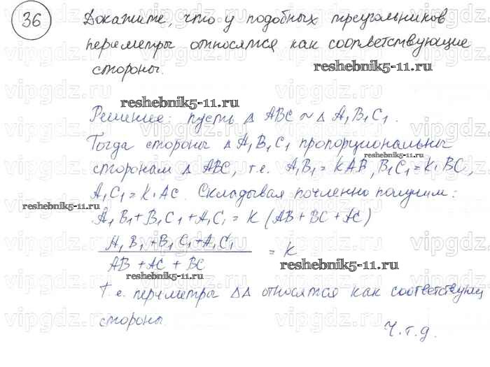 Готовая домашняя работа с ответами по Геометрии за 7, 8, 9 класс Погорелов Учебник Просвещение 2014 ФГОС - §11. Подобие фигур 36