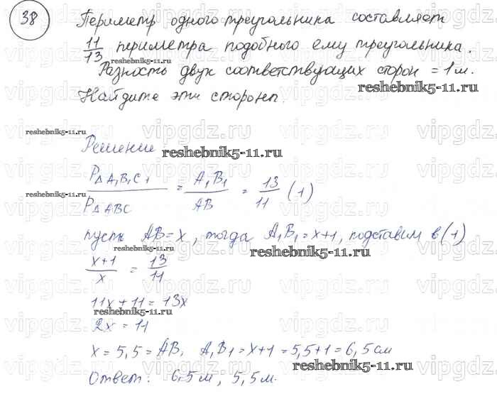 Готовая домашняя работа с ответами по Геометрии за 7, 8, 9 класс Погорелов Учебник Просвещение 2014 ФГОС - §11. Подобие фигур 38