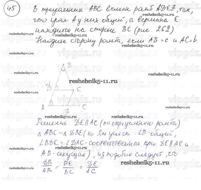 Готовая домашняя работа с ответами по Геометрии за 7, 8, 9 класс Погорелов Учебник Просвещение 2014 ФГОС - §11. Подобие фигур 45