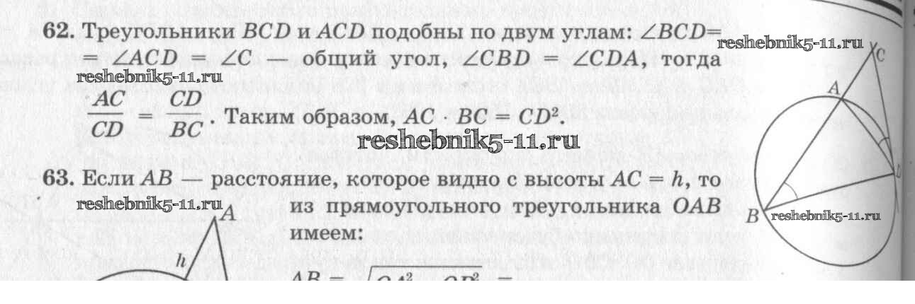Готовая домашняя работа с ответами по Геометрии за 7, 8, 9 класс Погорелов Учебник Просвещение 2014 ФГОС - §11. Подобие фигур 62