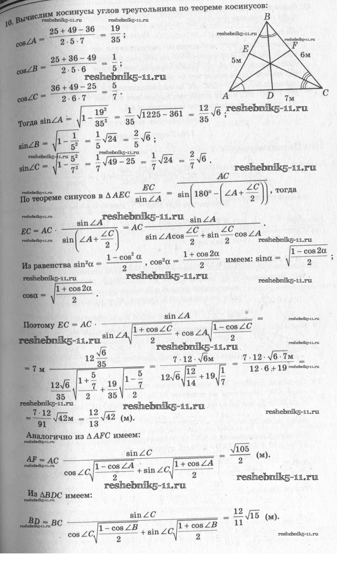 Готовая домашняя работа с ответами по Геометрии за 7, 8, 9 класс Погорелов Учебник Просвещение 2014 ФГОС - §12. Решение треугольников 10