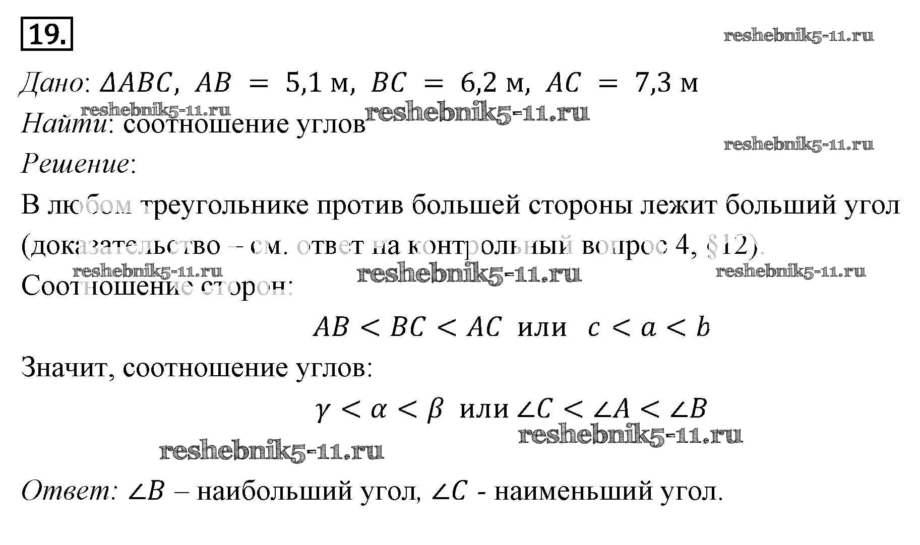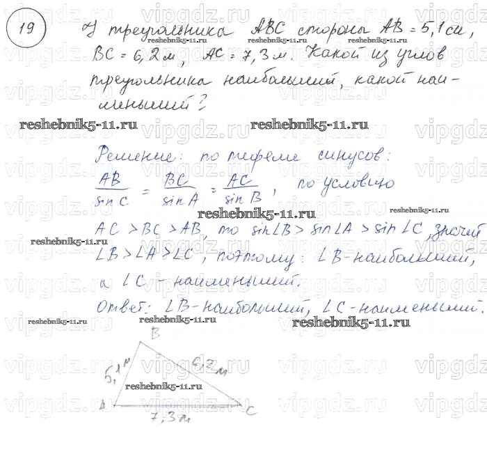 Готовая домашняя работа с ответами по Геометрии за 7, 8, 9 класс Погорелов Учебник Просвещение 2014 ФГОС - §12. Решение треугольников 19