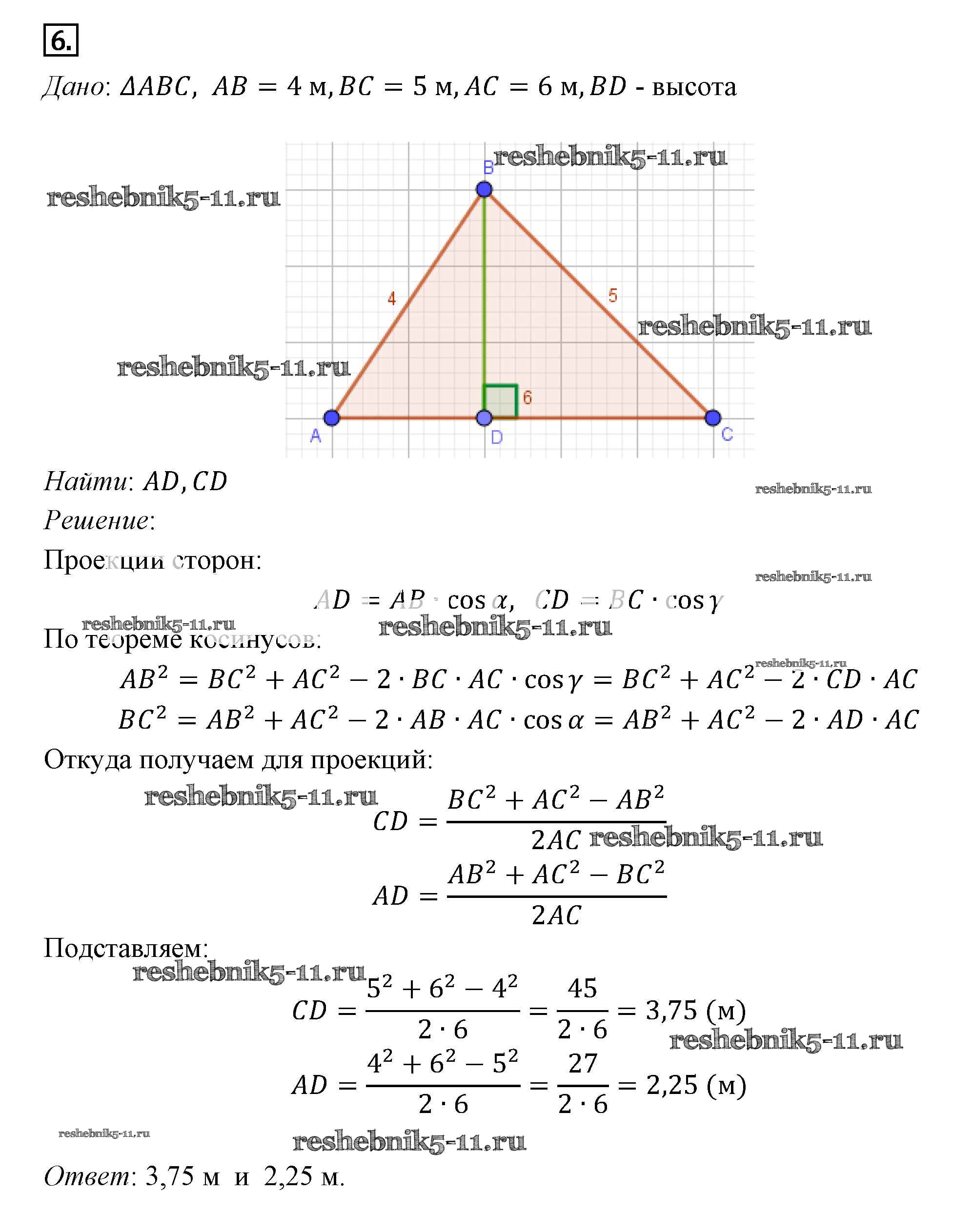 Готовая домашняя работа с ответами по Геометрии за 7, 8, 9 класс Погорелов Учебник Просвещение 2014 ФГОС - §12. Решение треугольников 6