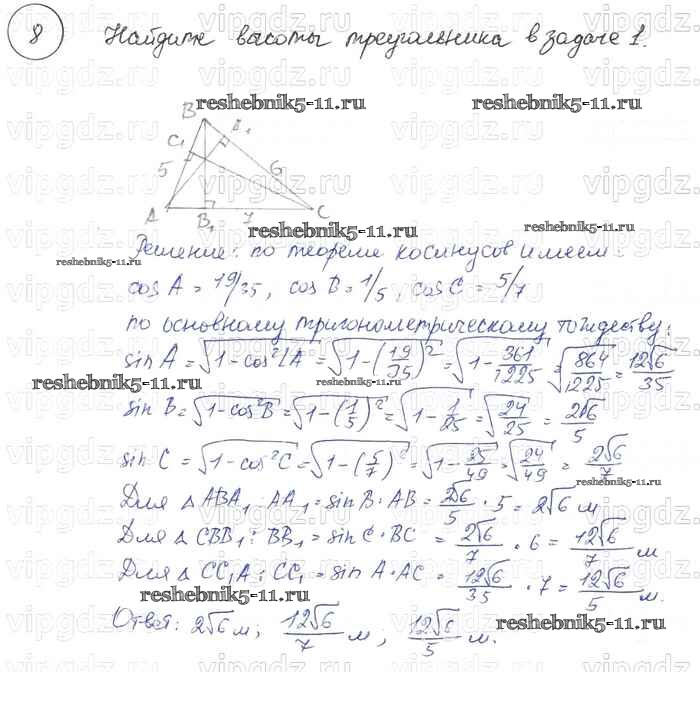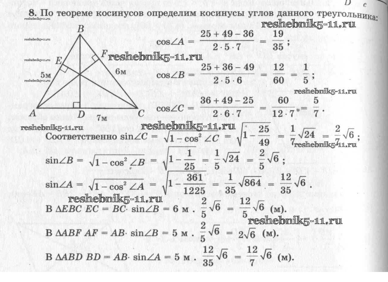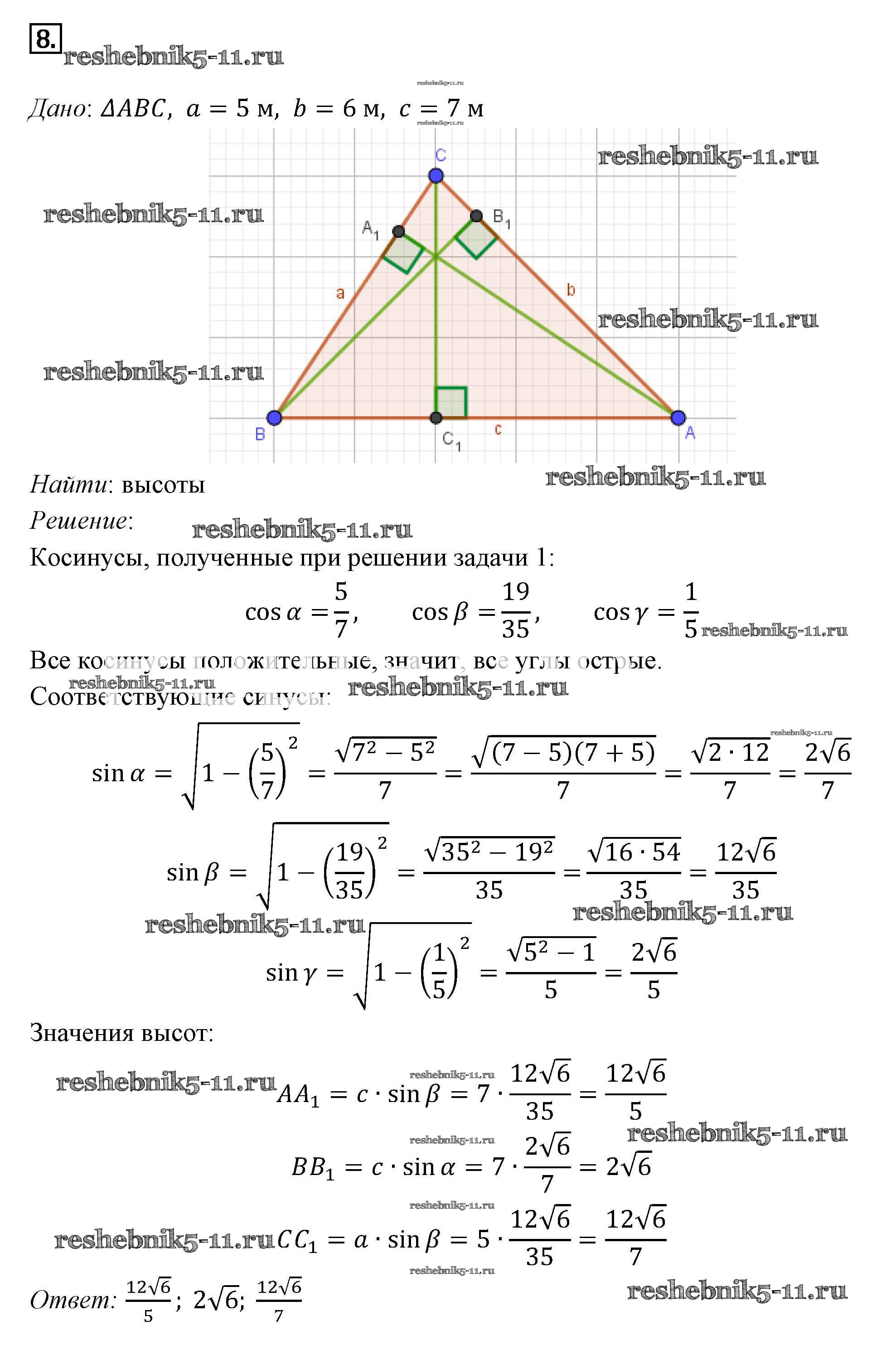 Готовая домашняя работа с ответами по Геометрии за 7, 8, 9 класс Погорелов Учебник Просвещение 2014 ФГОС - §12. Решение треугольников 8