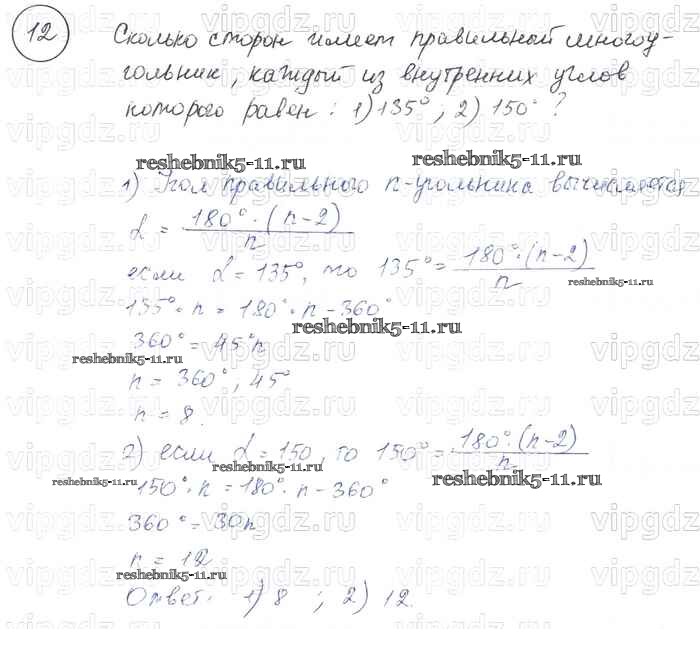 Готовая домашняя работа с ответами по Геометрии за 7, 8, 9 класс Погорелов Учебник Просвещение 2014 ФГОС - §13. Многоугольники 12